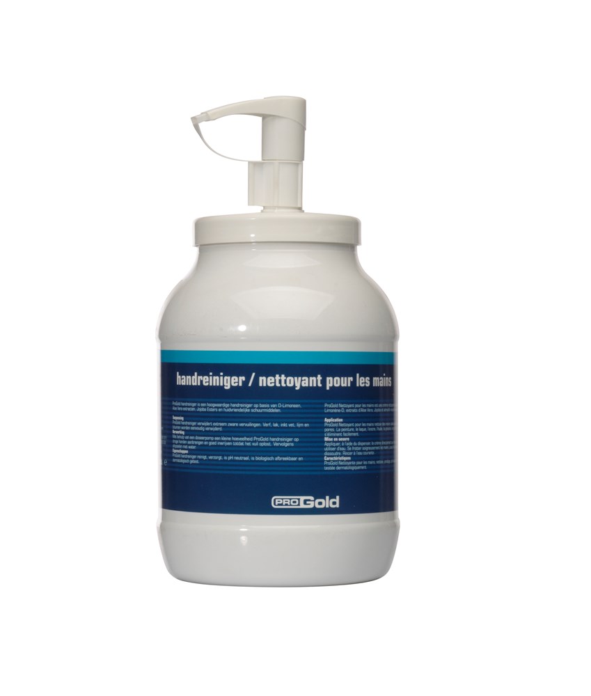 ProGold handreiniger is een hoogwaardige handreiniger op basis D- Limoneen, Aloe Vera extracten, Jojoba extracten en huidvriendelijke schuurmiddelen. Verwijdert extreem zware vervuilingen zoals verf, lak, inkt, vet lijm en bitumen.