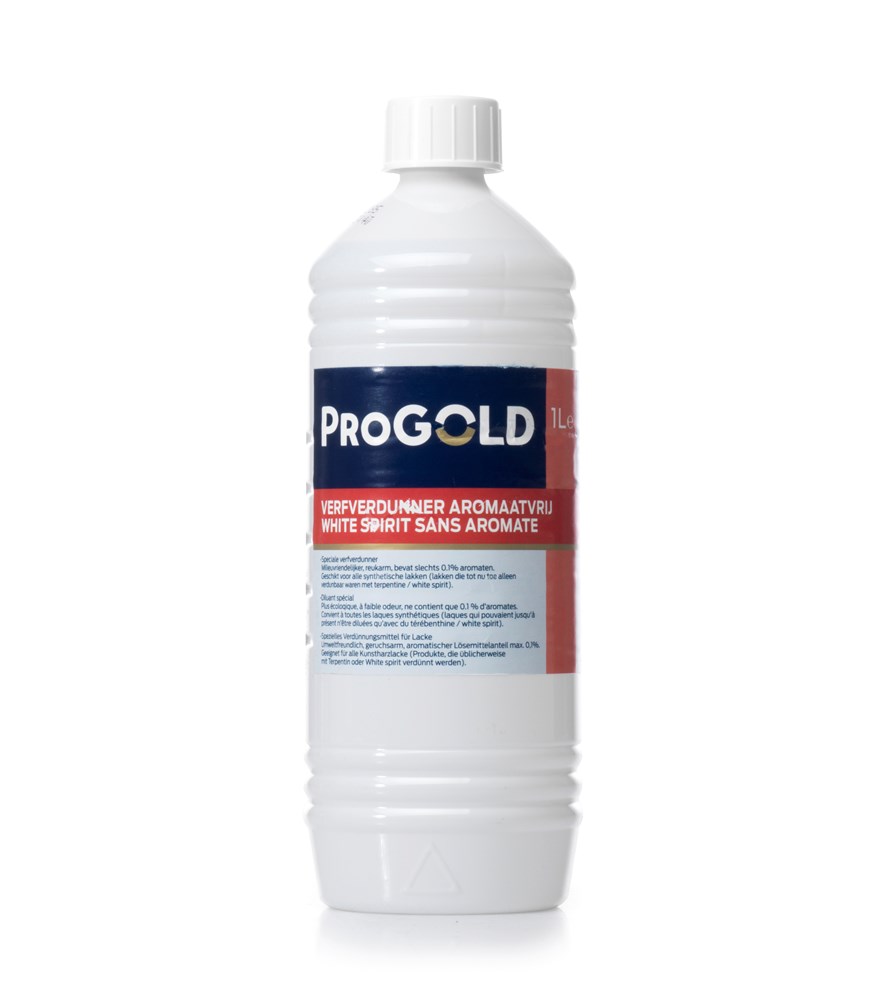 ProGold aromaatvrije verfverdunner voor synthetische lakken en olieverven. Tevens ontvetter voor metalen.